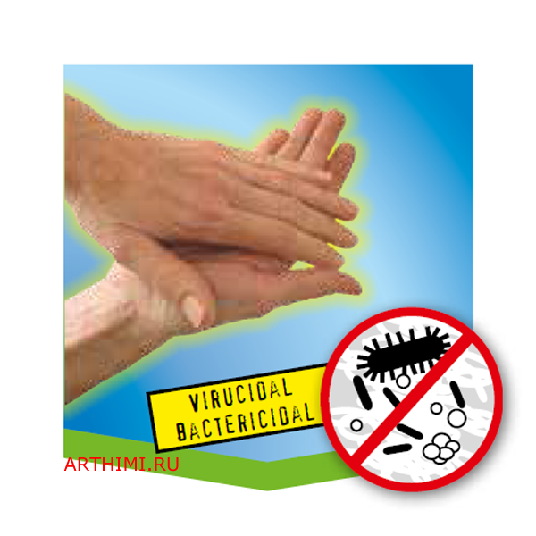 -дезинфицирует объекты, находящиеся в непосредственном контакте с человеческим телом: дверные ручки, принадлежности туалетных комнат, саун, бань и т.п.